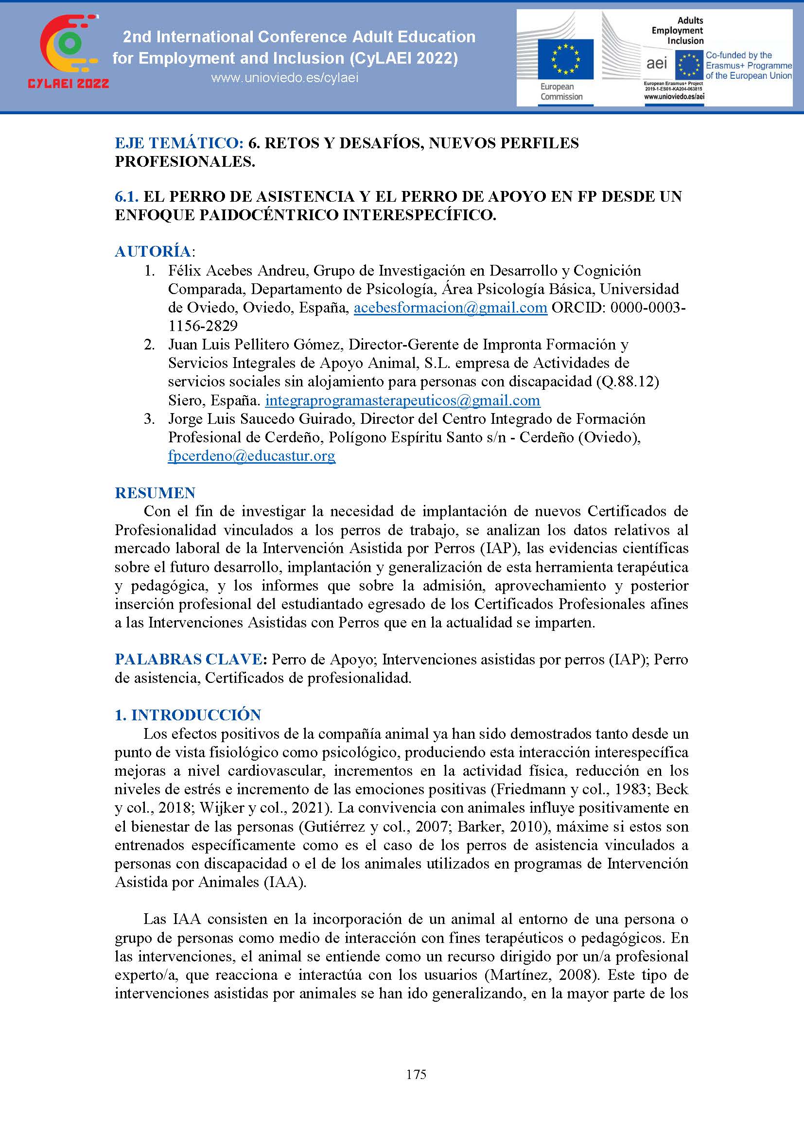 Impacto del Proyecto AEi: Adultos, Empleo e Inclusión (Impact of the AEi Project: Adults, Employment and Inclusion). EJE TEMÁTICO: 6. RETOS Y DESAFÍOS, NUEVOS PERFILES PROFESIONALES.EJE TEMÁTICO: 6. RETOS Y DESAFÍOS, NUEVOS PERFILES PROFESIONALES.6.1. EL PERRO DE ASISTENCIA Y EL PERRO DE APOYO EN FP DESDE UN ENFOQUE PAIDOCÉNTRICO INTERESPECÍFICO.